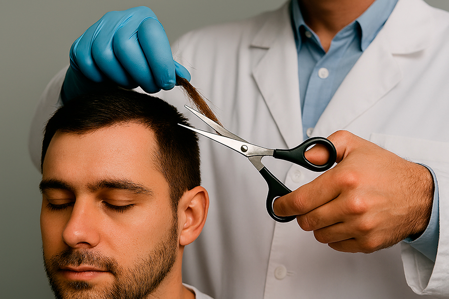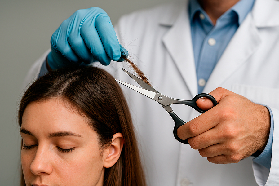 - 90 to 120 strands of hair are snipped close to the scalp